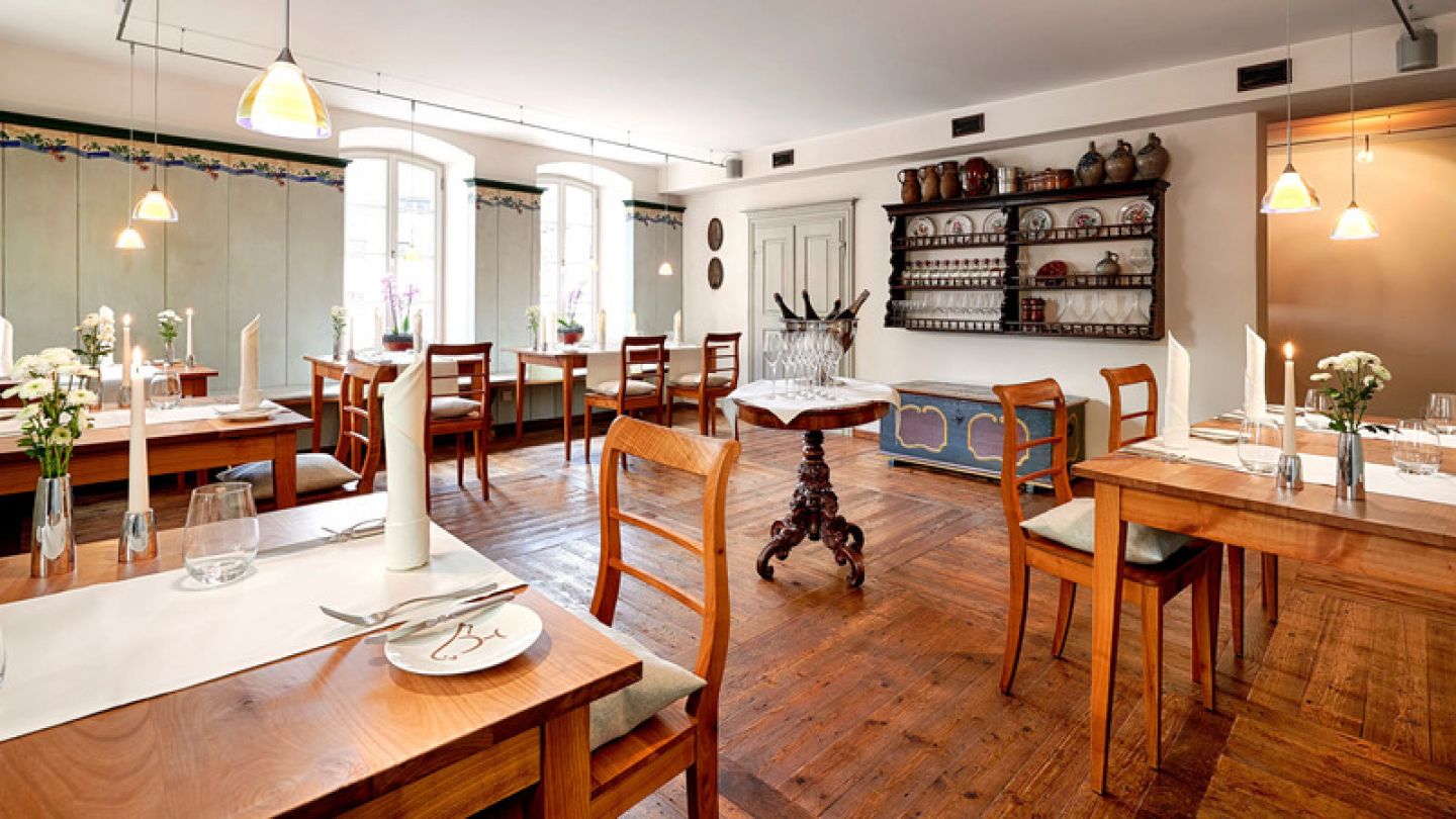 The hotel also impresses with its cuisine: in the “Zur Blume” dining room with its 200-year-old wood paneling, in the Jägerzimmer or in the Brunnenstube, guests can enjoy regional specialties of the highest quality. The wine cellar invites guests to enjoy convivial wine tastings, while the Café Meisentörtchen spoils them with fine French patisserie.